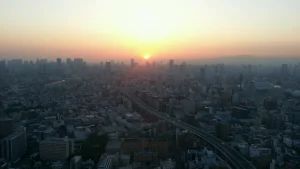 ホテルからの夜明けの光景(正面が京都方面)です。