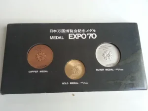見た瞬間に、書いてある文字を読むまでもなく、それが大阪万国博覧会(1970年)の時に発行された金・銀・銅の記念メダルだということがわかったのですが…、