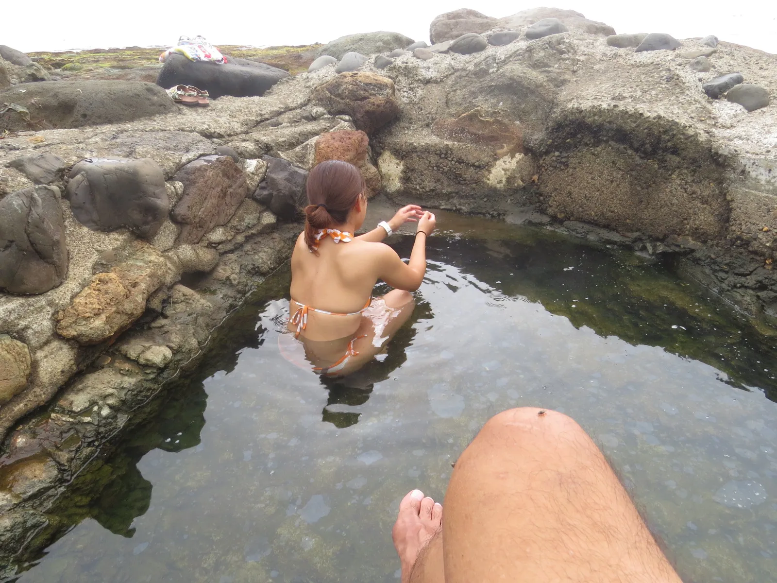 干潮時には温泉として入れるのですが、潮が満ちてくると海の中に沈んでしまう珍しい温泉です。
