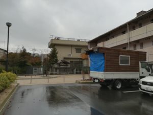 左から3番目のヤシの木あたりに青の1号が見えます。