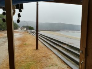 聞こえるのは海岸に打ち寄せる波の音と、屋根を叩く雨音だけ。