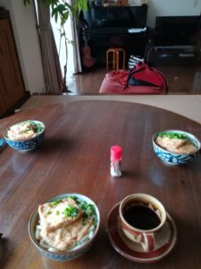 本当は主夫作のつまんない昼食などでなく、妻の手料理でむーちんさんと一杯飲りながら今後のリタイア生活やブログ作りについて相談したかったのですが、先をお急ぎとのことで残念でした。慌てるあまりにおせんべいをお忘れでしたね(笑)