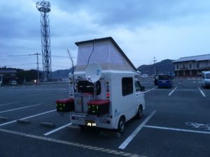 朝、第1駐車場を見ると変わった車が停まっているので近寄ってみると