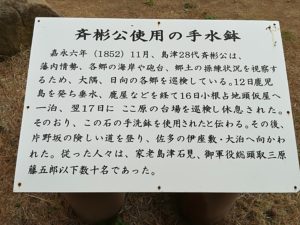 あの島津斉彬がこの岩の窪みで手を洗ったんでごわす。
