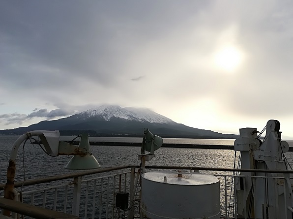 雪を被った桜島を左手に見ながら、錦江湾を進んでいきます。