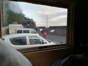 車がゾクゾク集まり、桜島の山裾から日が昇る中、7時10分乗車開始です。