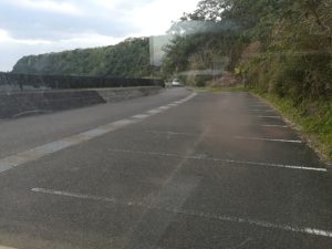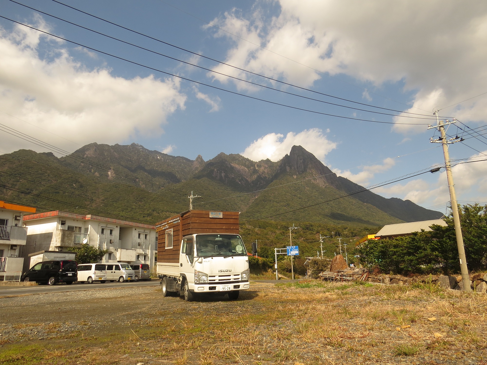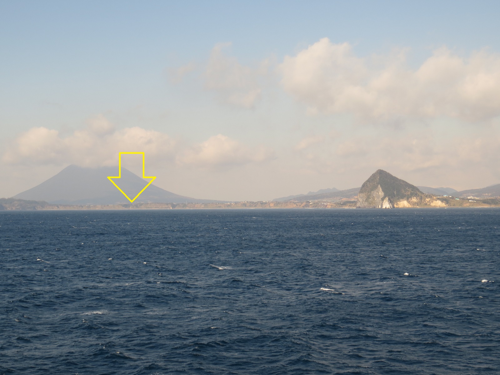 山の中腹には白いものが見えます。さすが日本で積雪が観測される最南端の島です。