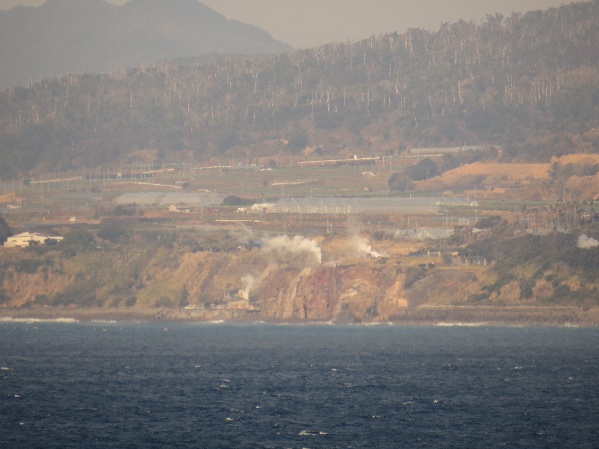 そして、あの絶景温泉「たまて箱の湯」はあの辺の湯けむりが上がっているあたりです。