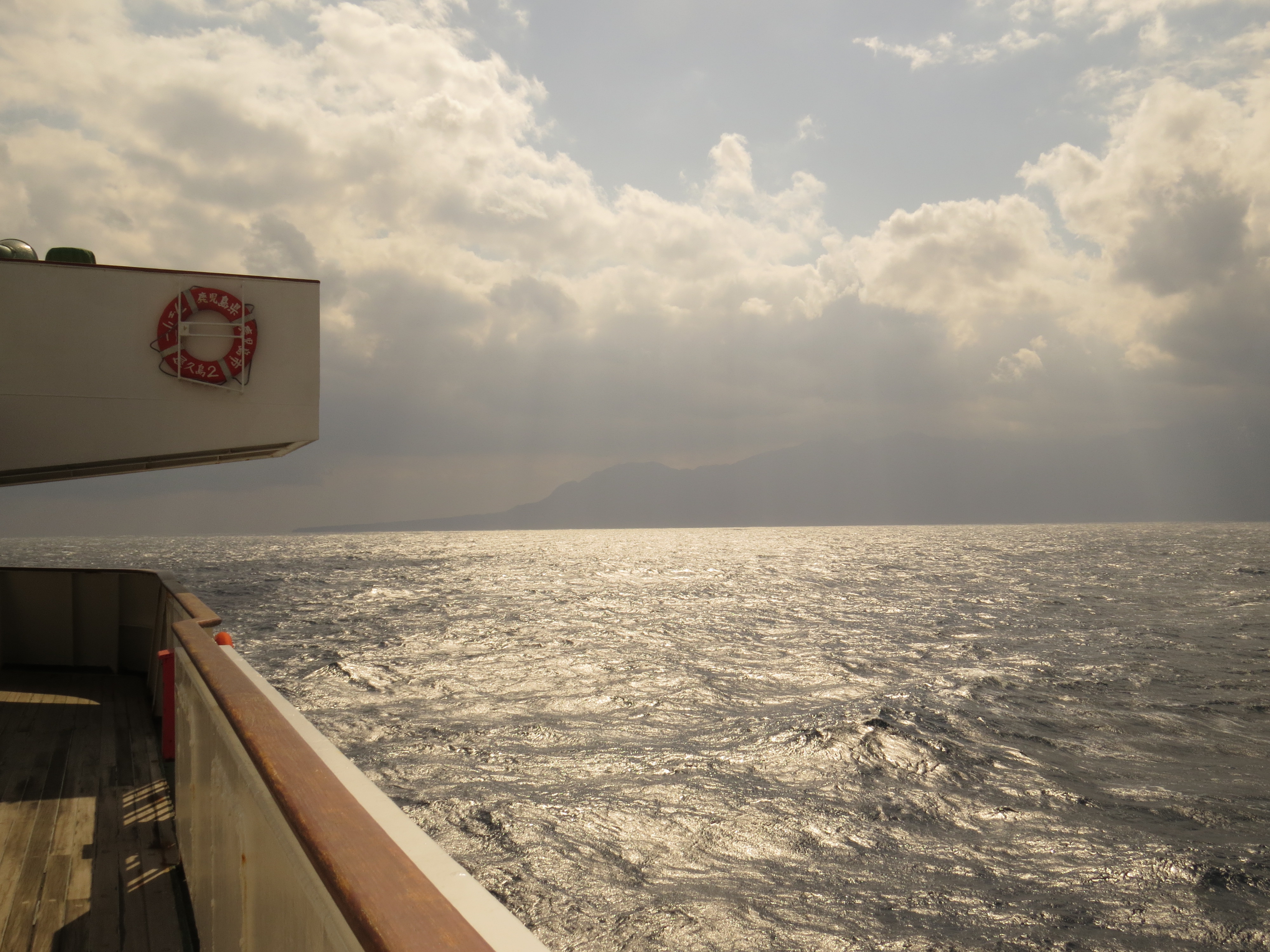 錦江湾を抜けて外海に出ると、さすがに大きく揺れます。