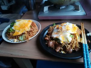 朝は前の晩に食べきれなかった焼き物の残りを使って、定番の