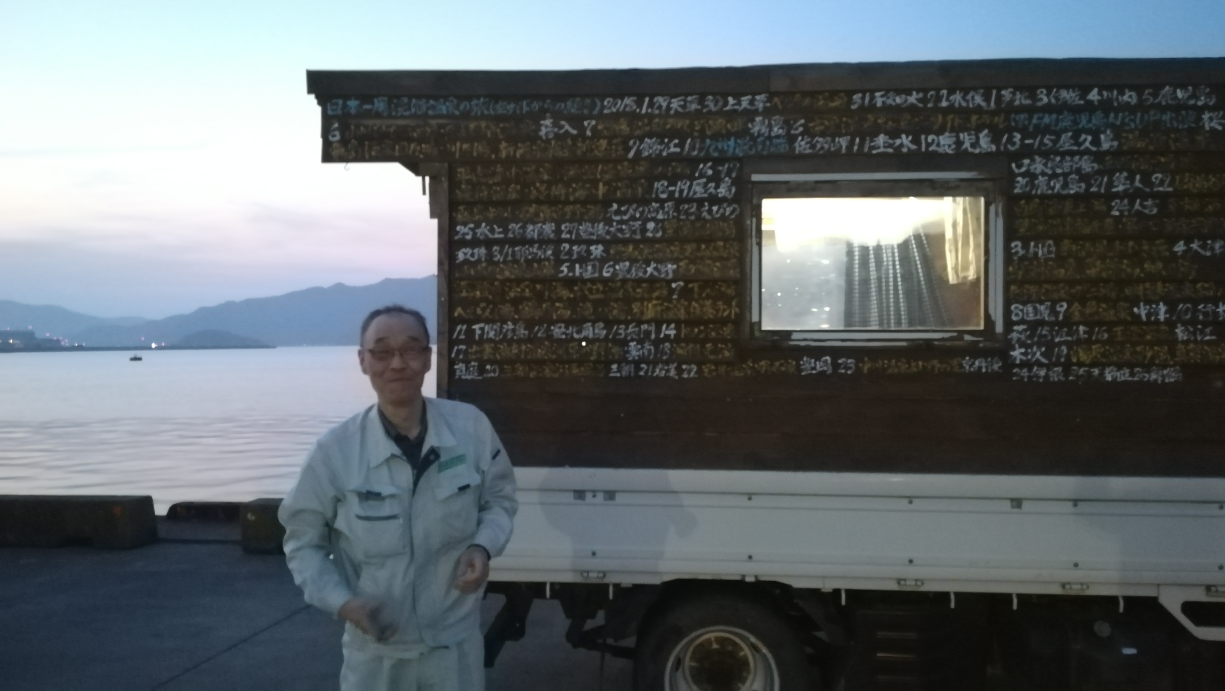 岸壁に停めていた青の1号を、そろそろフェリー乗り場の駐車場に移動させようと思い準備を始めたら