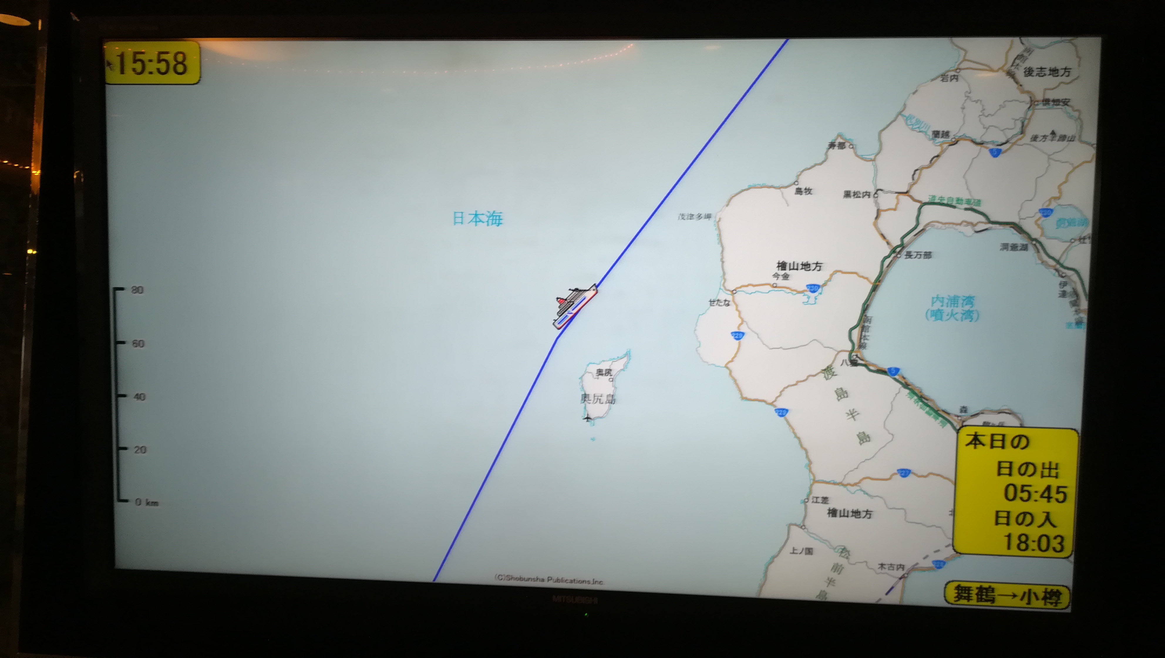 舞鶴港を出てしばらくすると電波が途絶えていたのですが、15分ほど前に突如入りだしたのです。