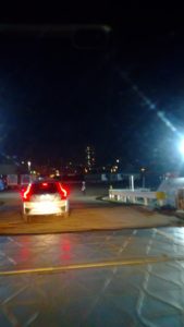帰れなくはありませんが、夜の運転はイヤなのと、サッカーのウクライナ戦がちょうど始まる時間なので、すぐ隣の公園の駐車場に青の1号を停め、