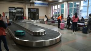 空港内の固いベンチで一夜を過ごし