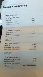 ここまで飛行機を3便も乗り継ぎ、次の7:05発エカテリンブルク行に乗れば、