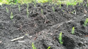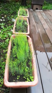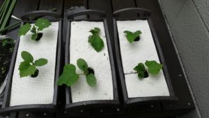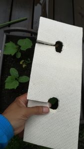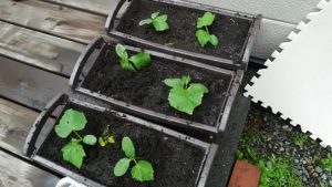 そして、青の2号の屋根で育てようと思っていたゴーヤとキュウリは、ゴーヤが一つだけ芽が出たのですが