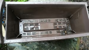 このままだと、底の隙間から振動で土がどんどん外に出ていってしまいそうなので
