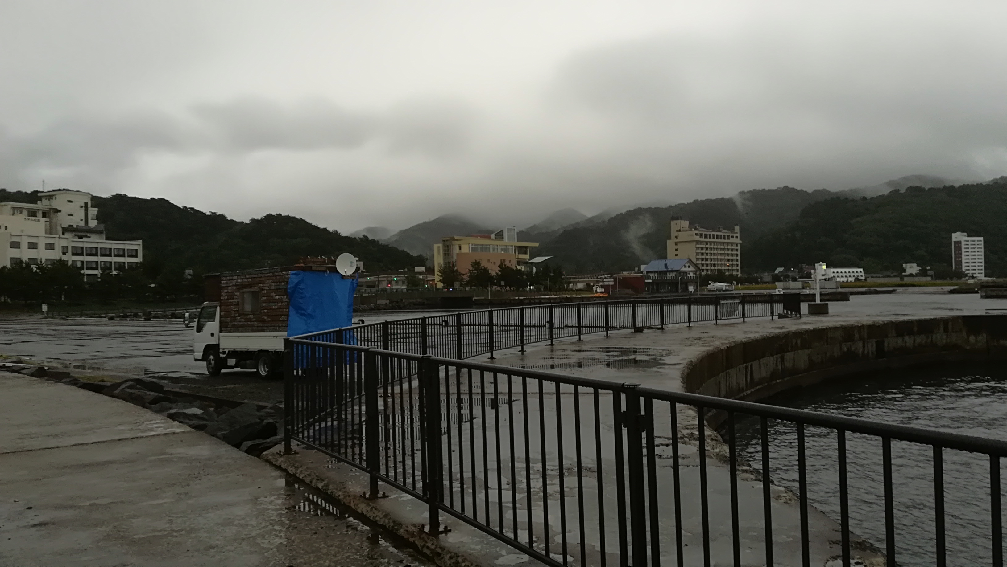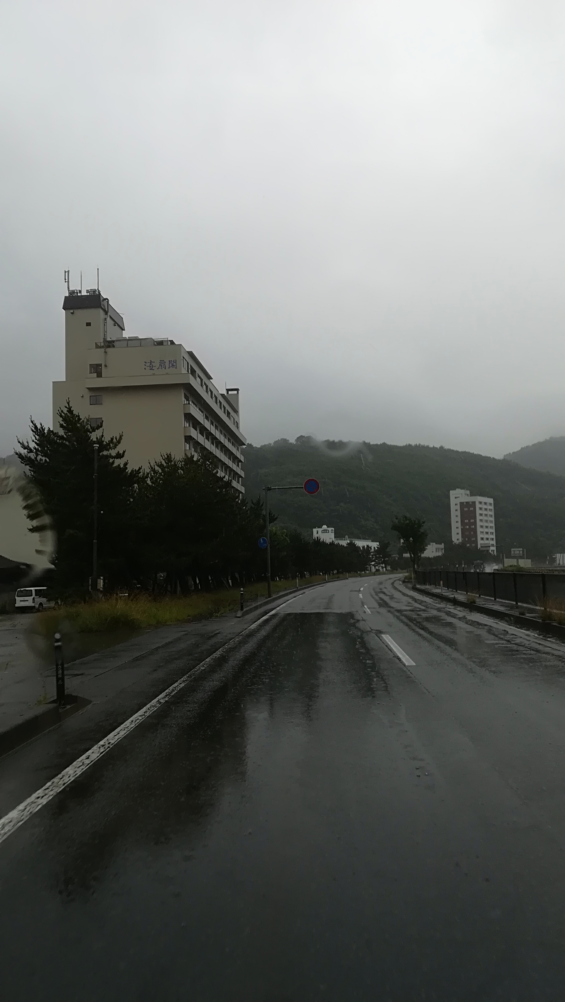 あまりにも激しい雨なので、サンセットビーチの駐車場でNHKの「半青」と、火野正平の「こころ旅」を観ながら待機していたのですが、止みそうもないので出発です。