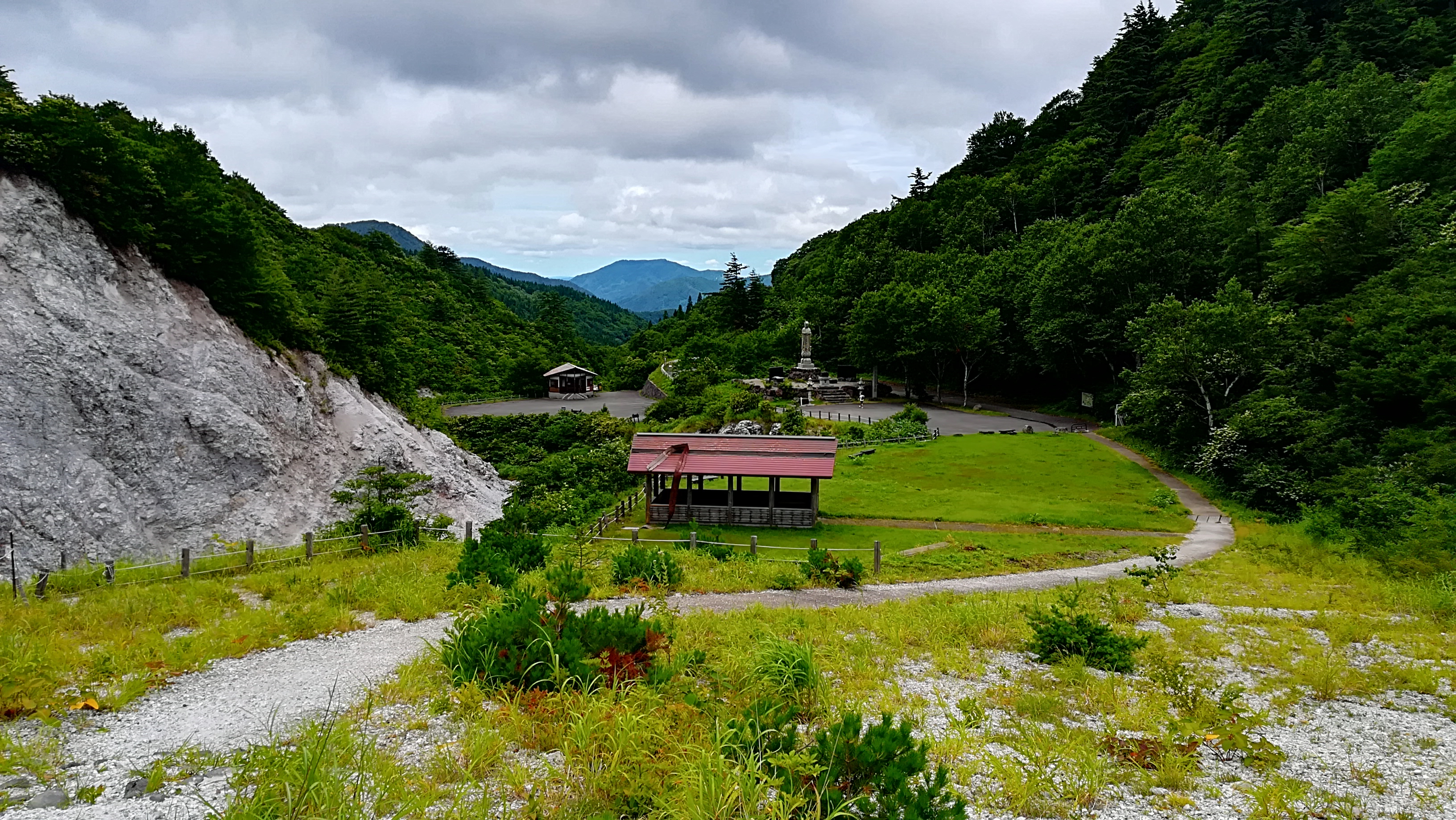 この駐車場のすぐ下が、青森県の恐山、富山県の立山と並ぶ日本三大霊地の一つと言われている