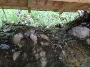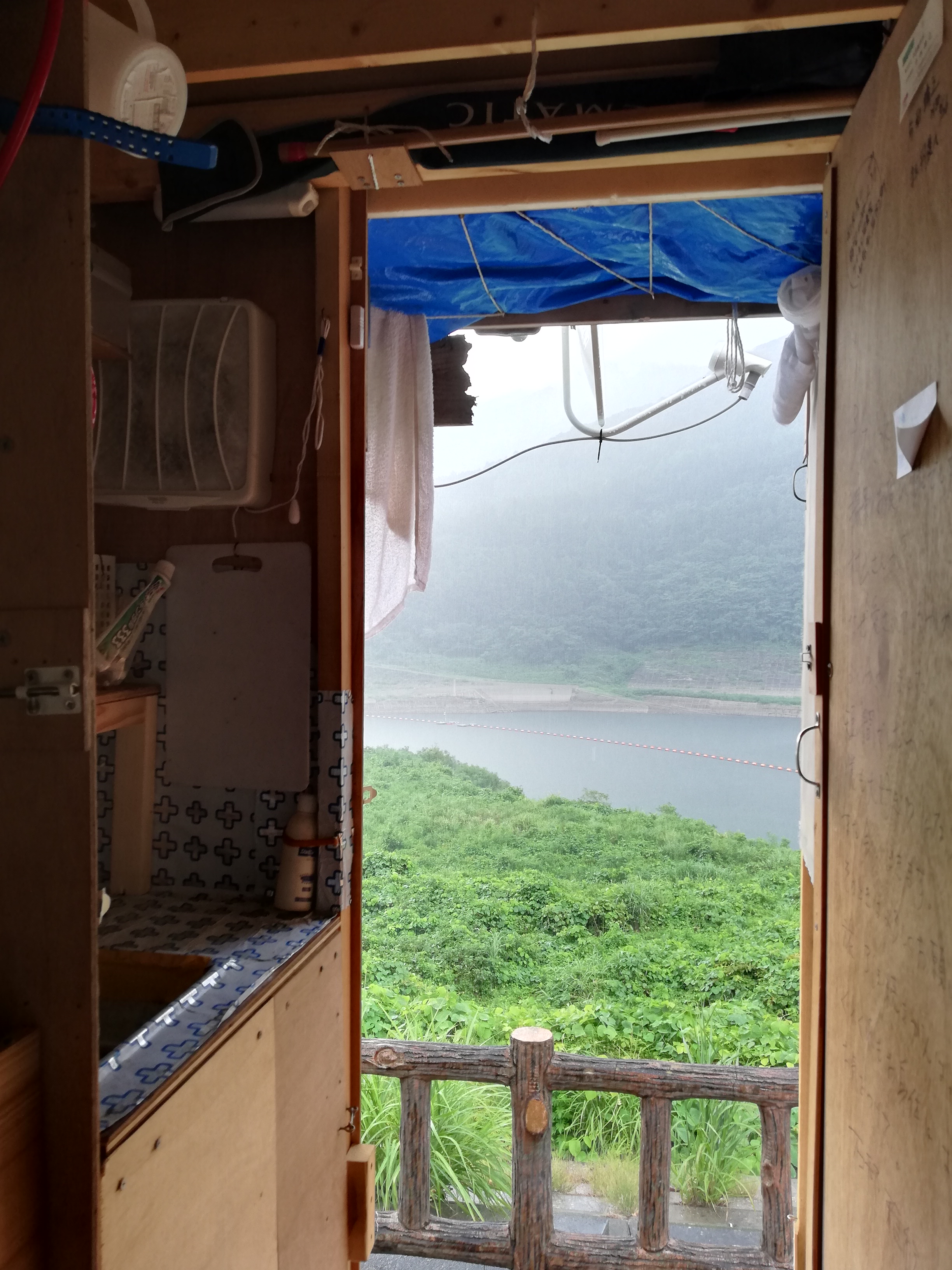 そして、外に出てこの不安定なコンパネ橋を渡って行くと
