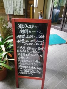 日帰り入浴の案内書きがあります。