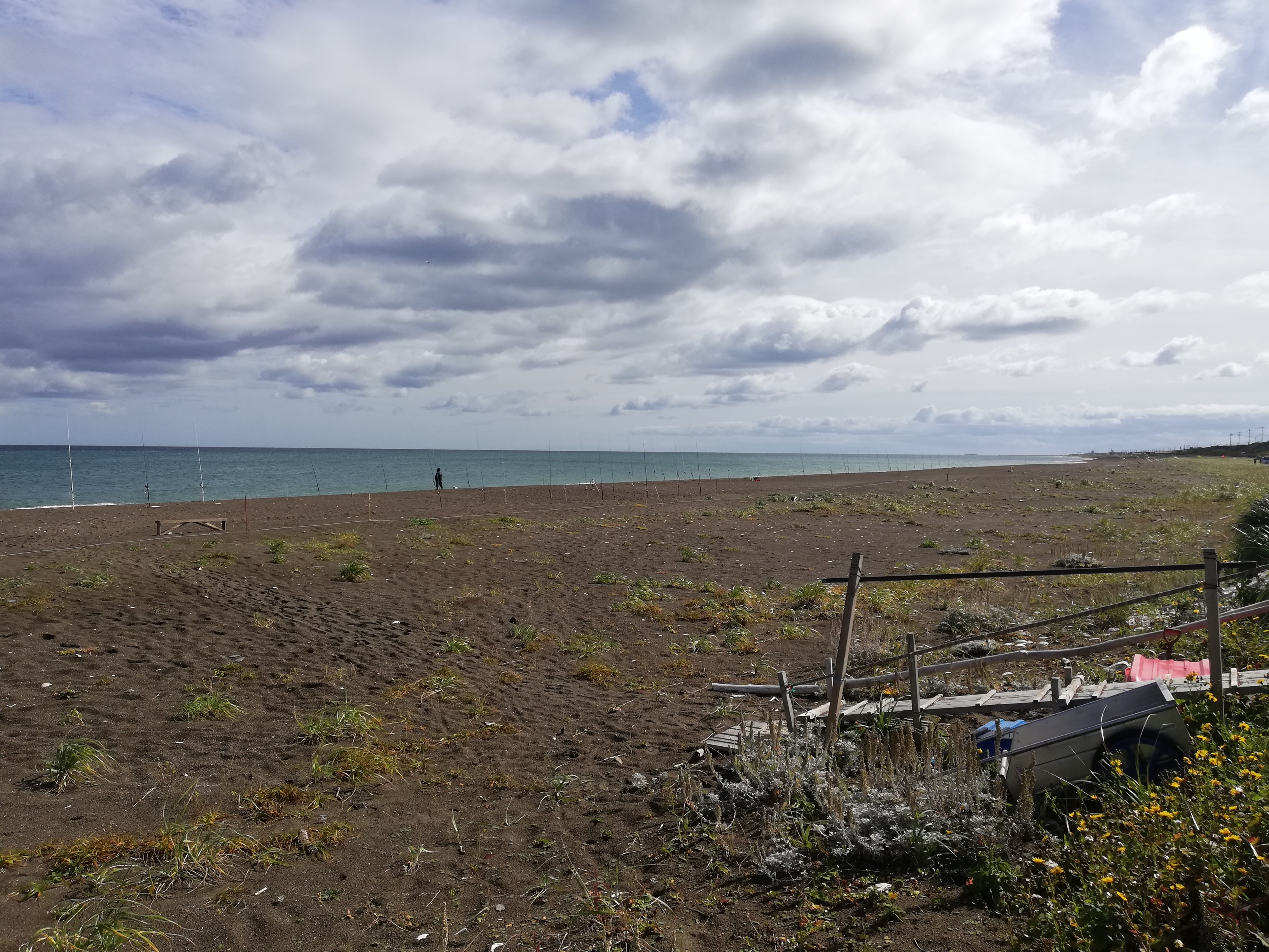 驚いたのは、この長い海岸線に沿ってずーと竿が立てられていることです。