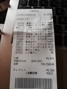 ちなみに、昨日の約3日分の買い物が3,564円。