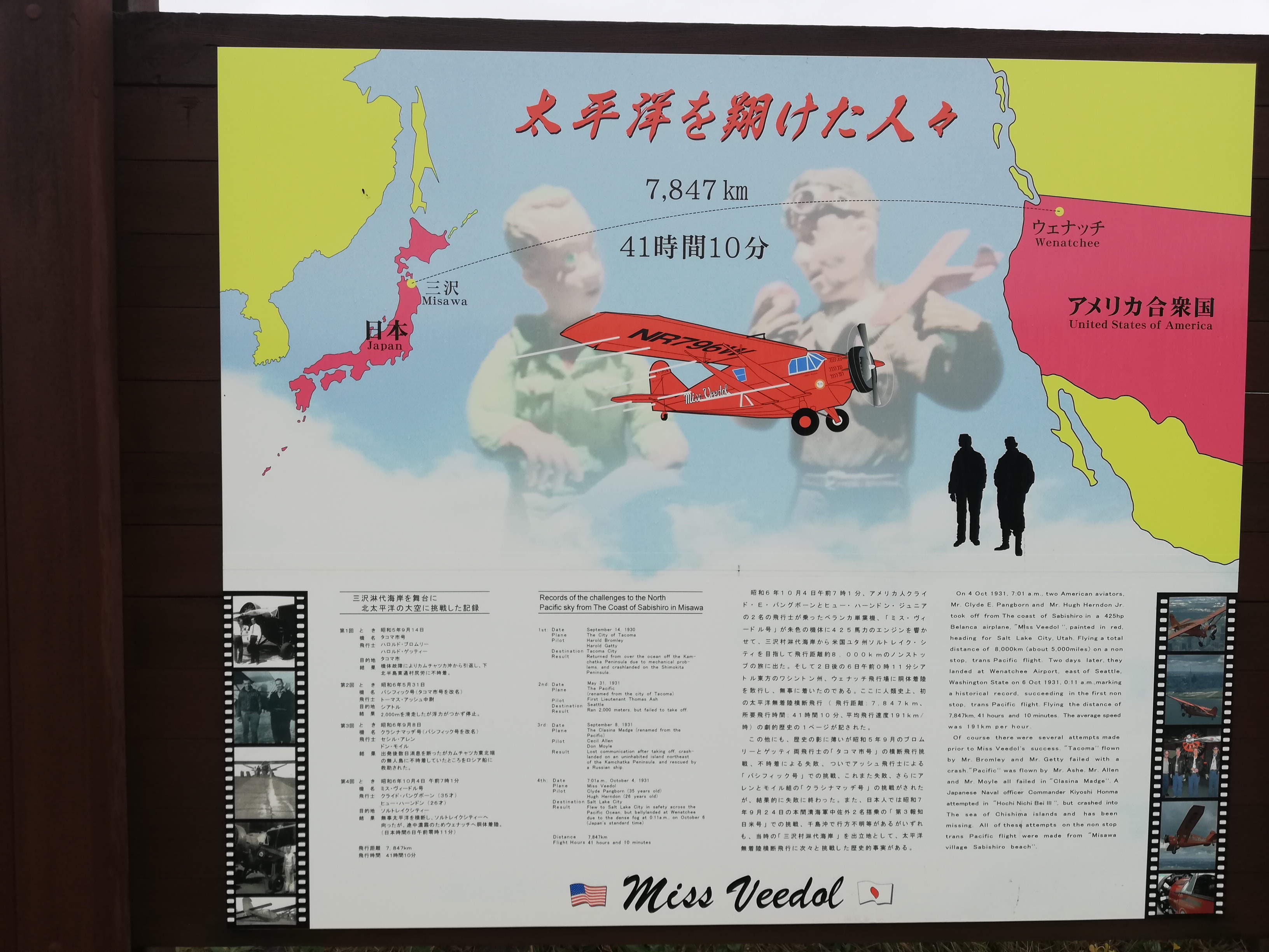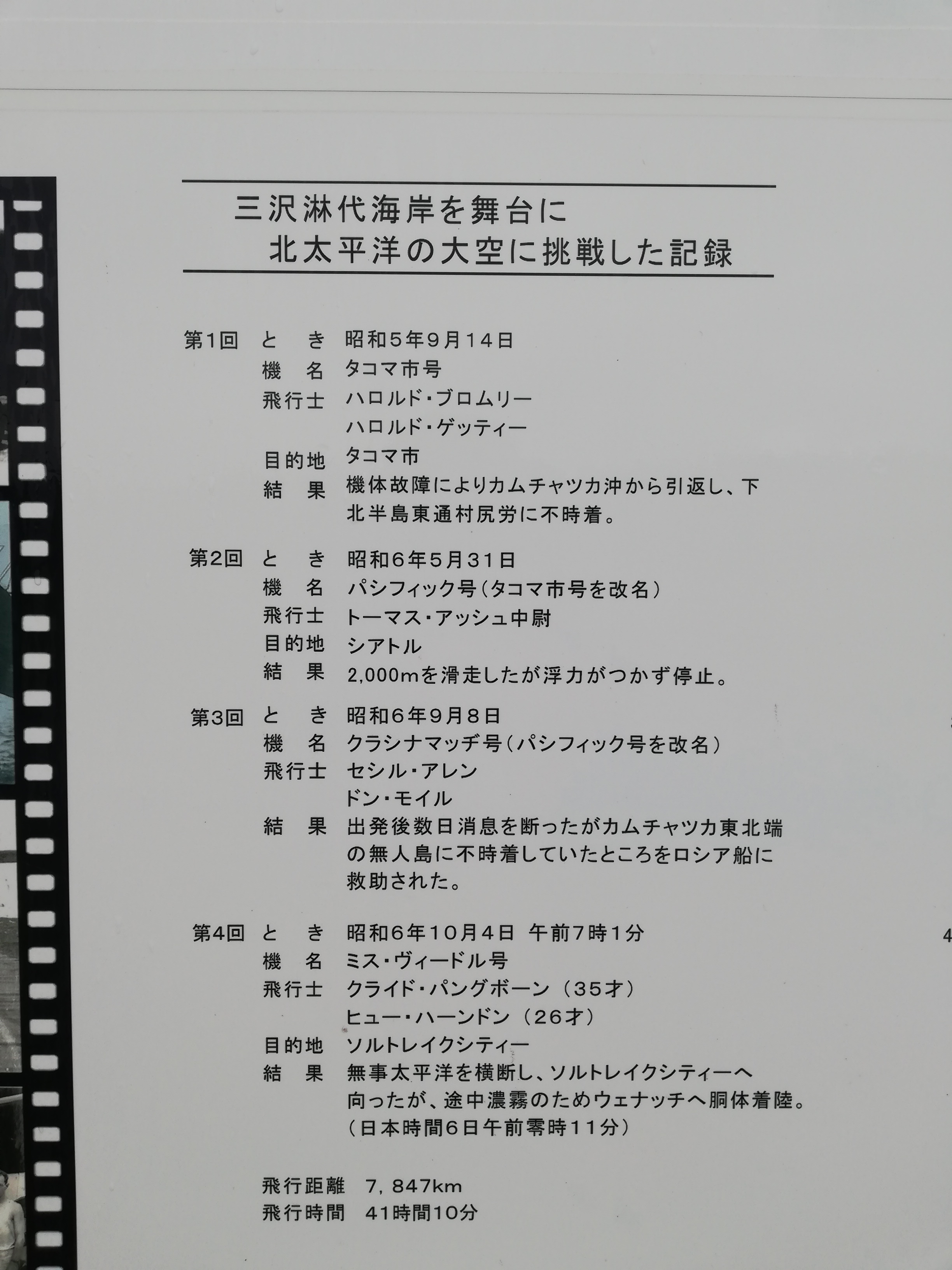 淋代海岸は、日本本土の東端に近く北アメリカ大陸までの距離が最短になるので、太平洋無着陸横断飛行の起点として多くのパイロットが選択しているのだそうです。
