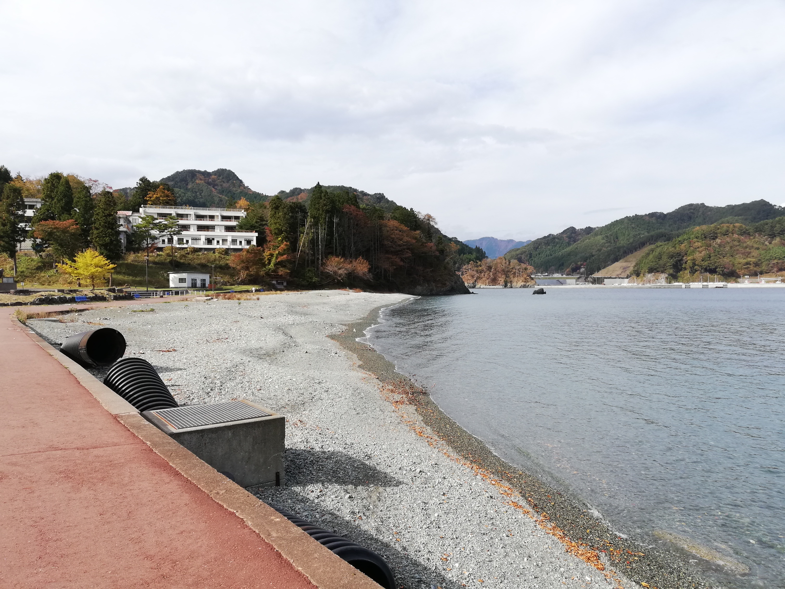 目の前には愛の浜という小砂利のきれいな海岸が広がっています。
