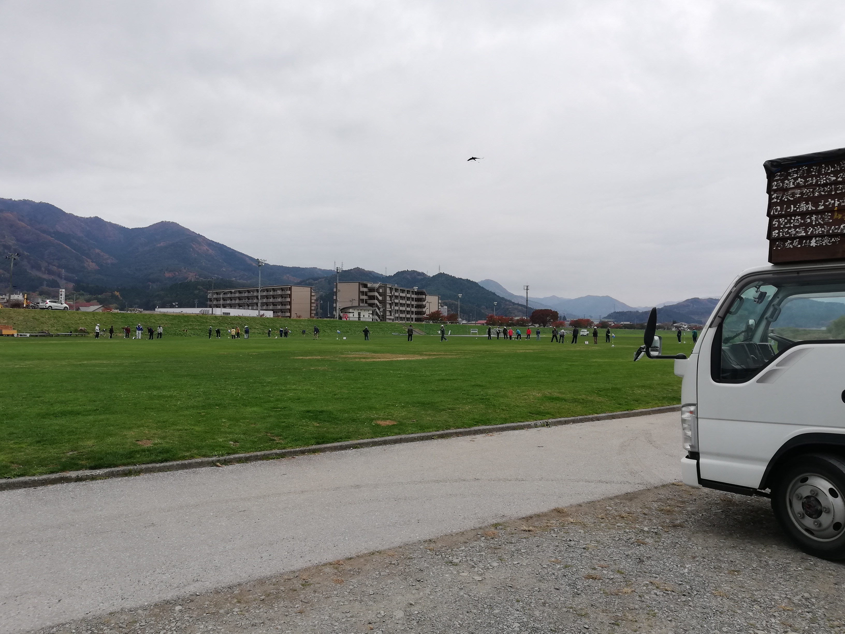 パークゴルフみたいなのの大会をやってるようで落ち着かないし、