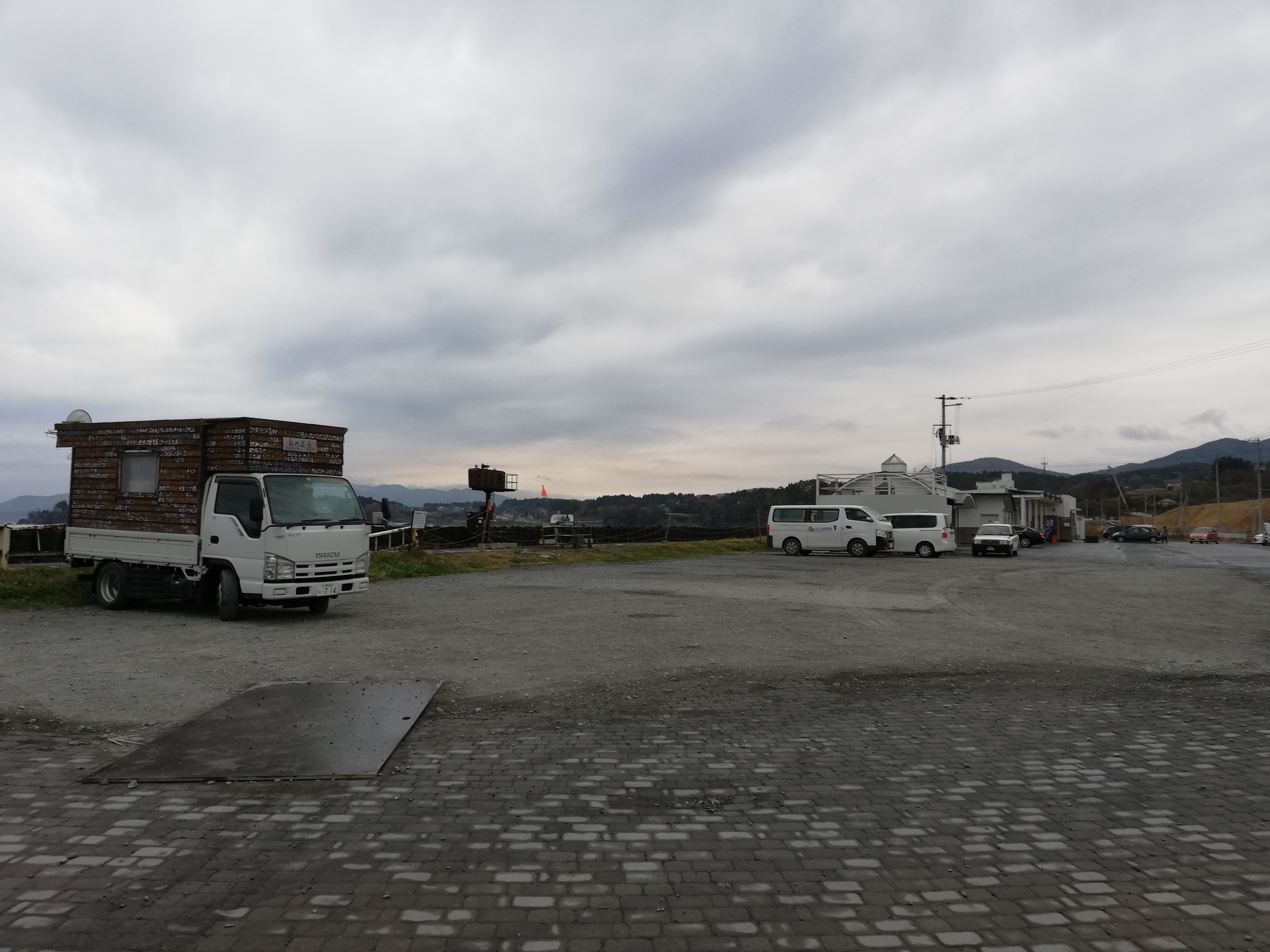 20分ほど走ったところで、国道を左折し、防潮堤の手前のスペースに青の2号を停めます。