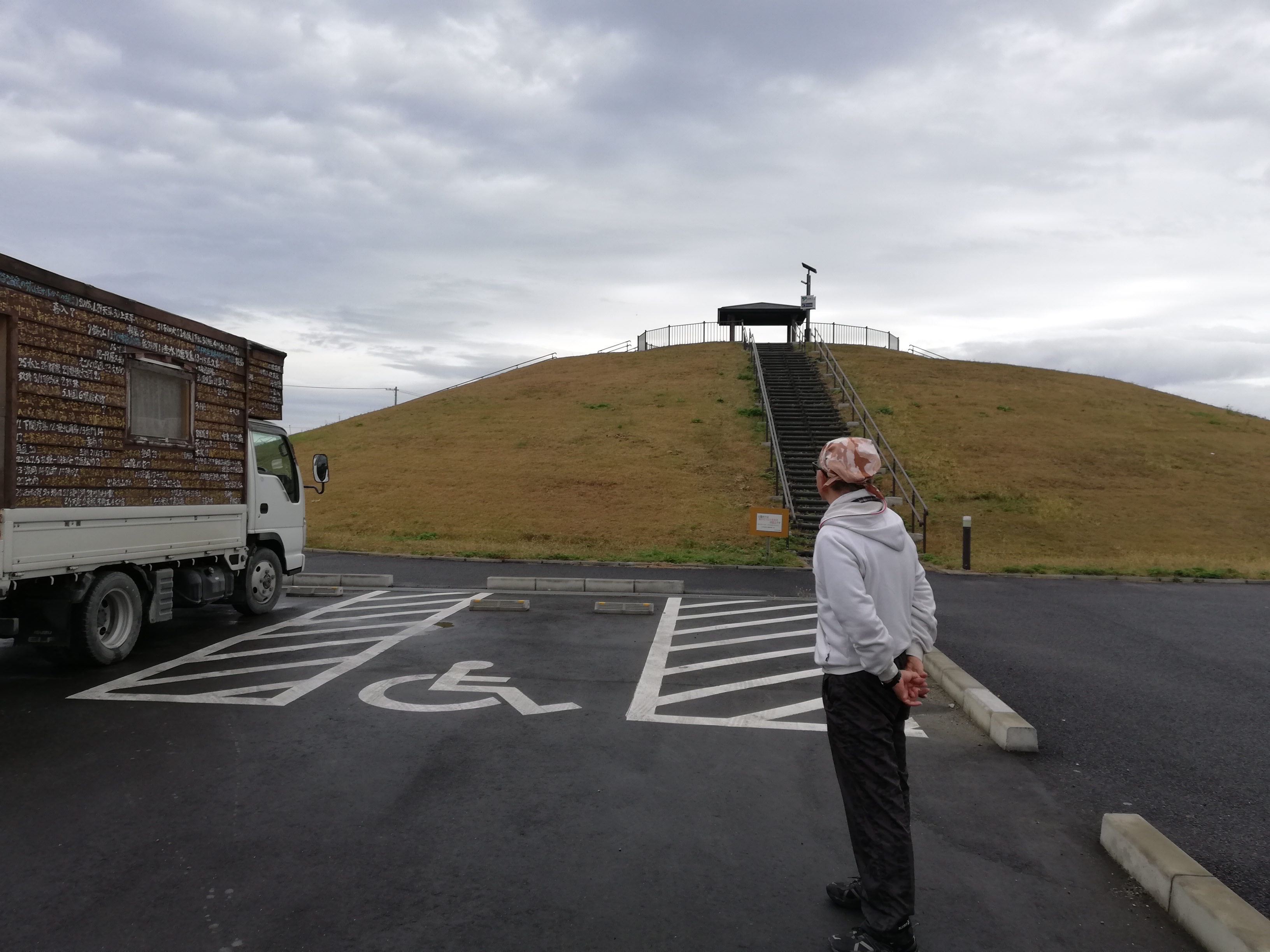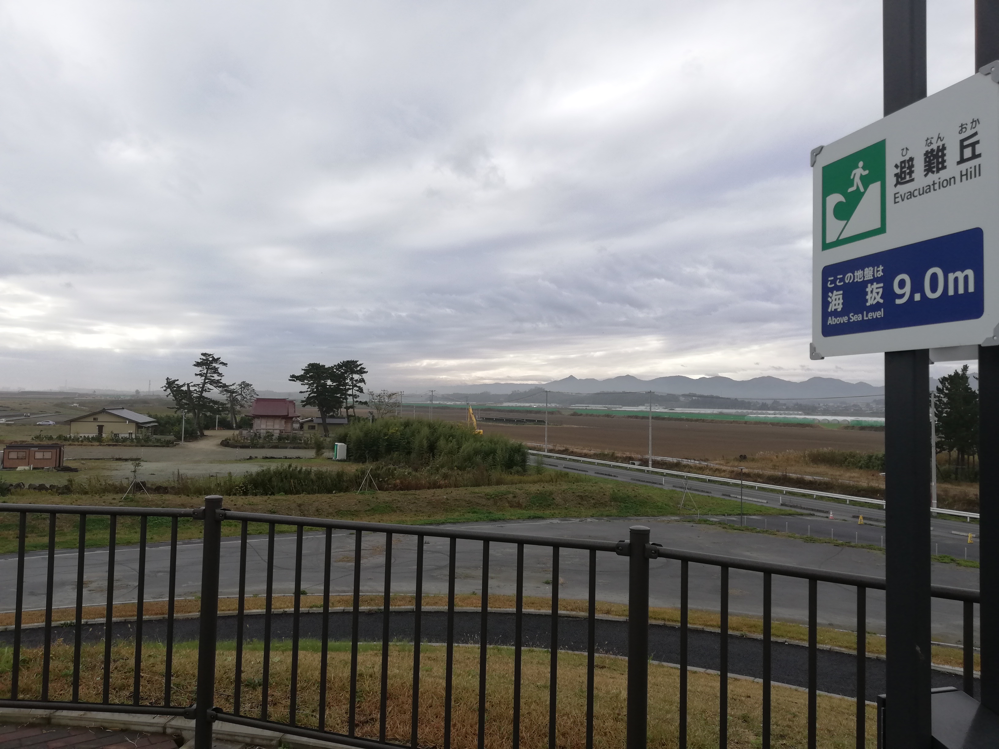 しかも、あの高台は海に向かって船のような流線形をしていたために浸水しなかったらしいのですが、この高台はまん丸です。