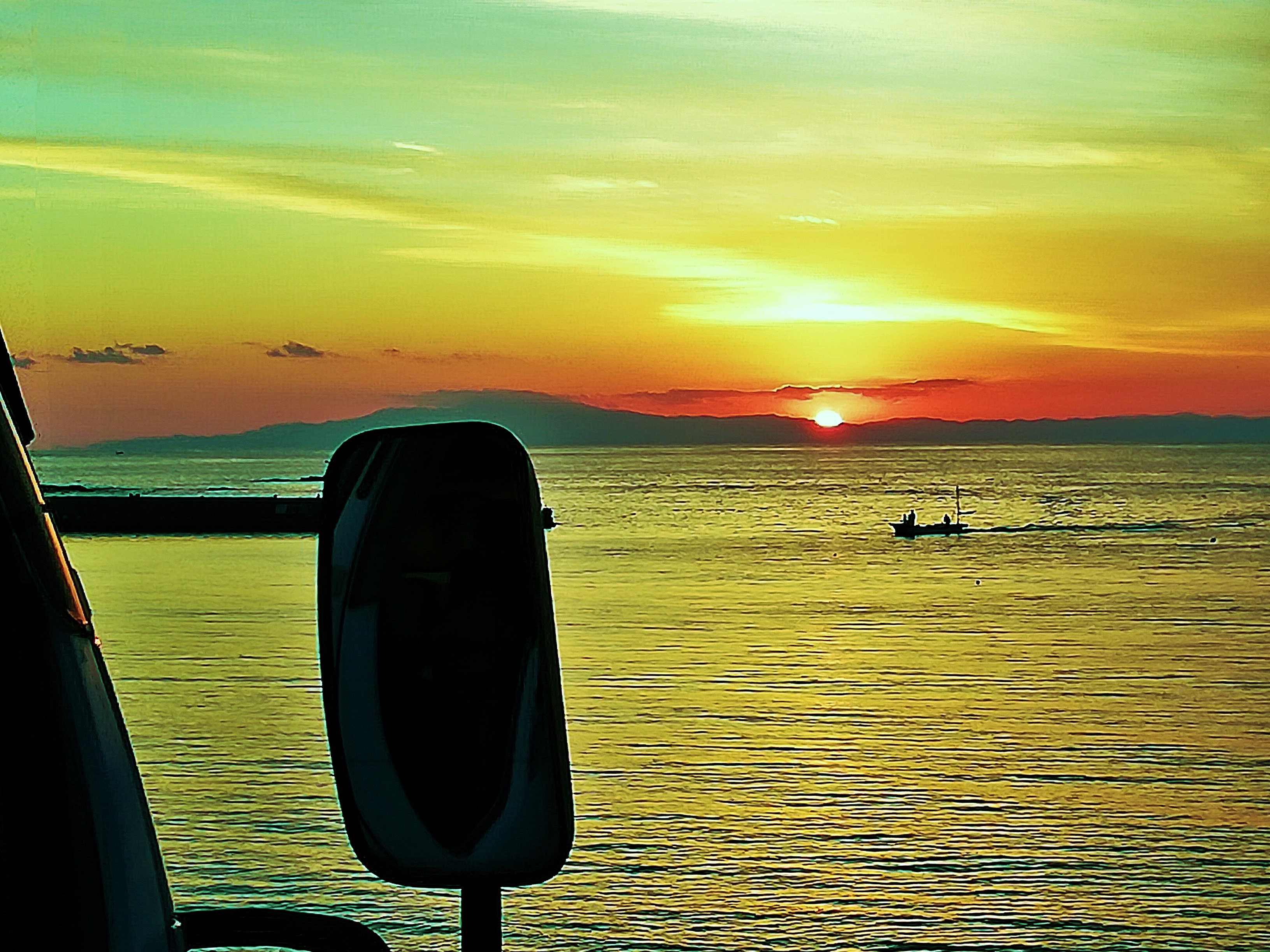 遠く伊豆半島の向こう側に日が落ちていきます。