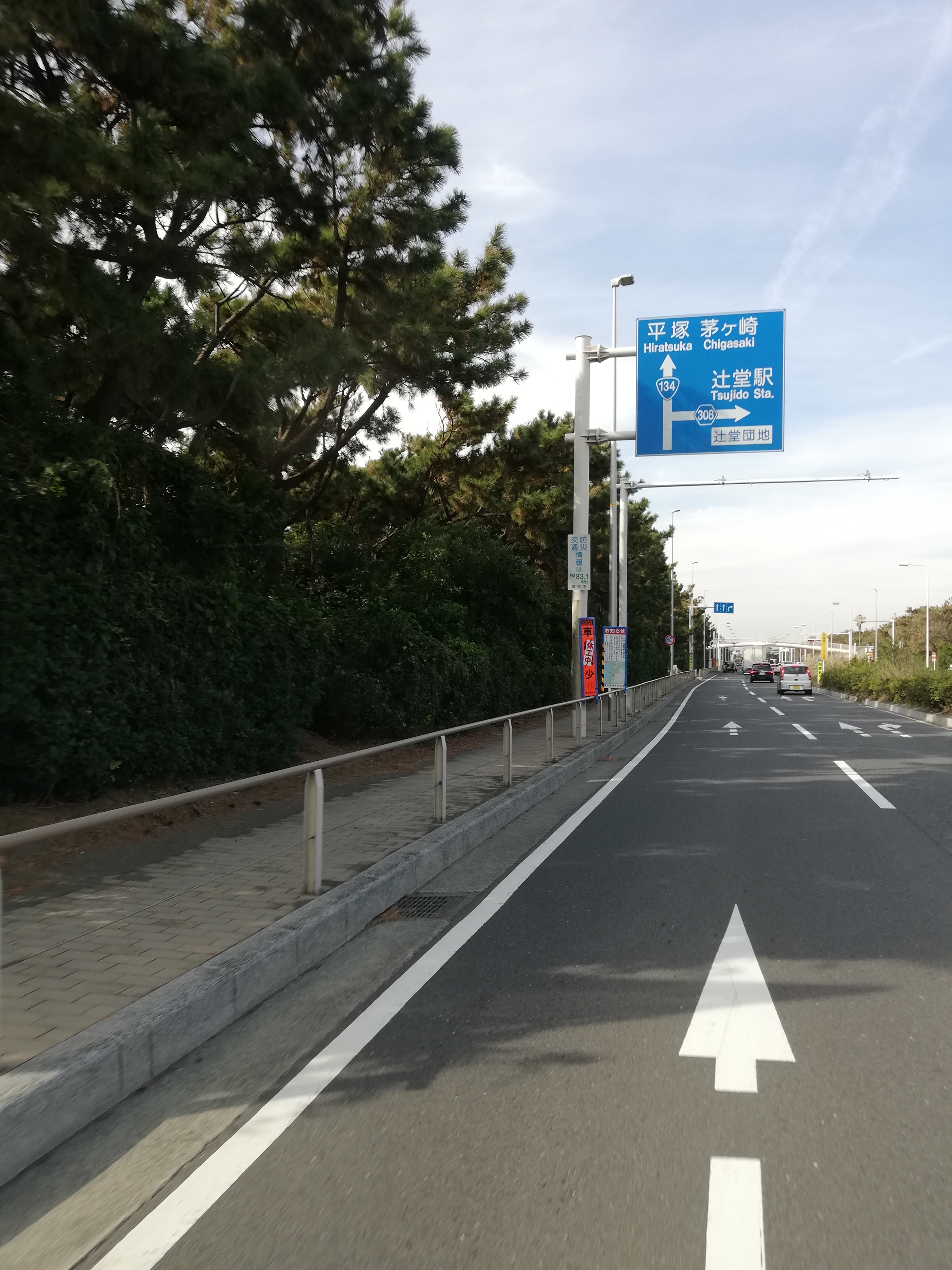 を越えると、この辺りの左側が辻堂の浜辺になります。