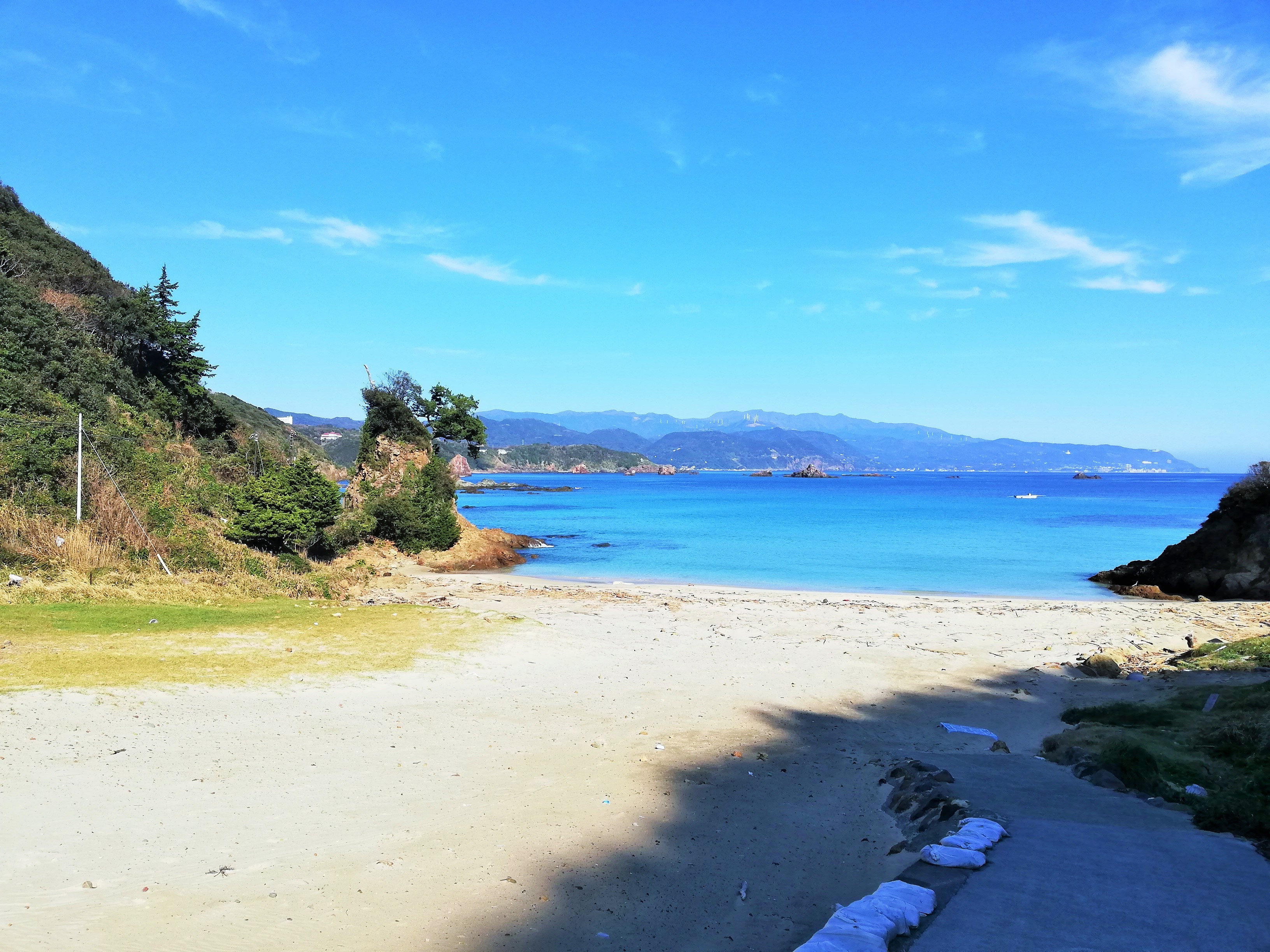 駐車場から坂道を歩いて下って行くとひっそりとした砂浜の