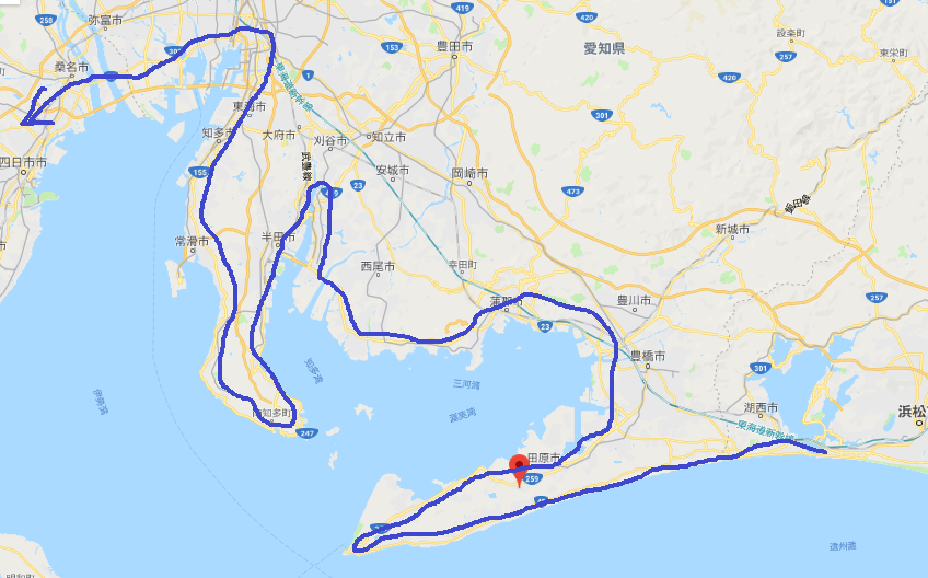 今年は「海岸線の旅」と銘打っているので、ミヤマクワガタのメスのアゴのような渥美半島と知多半島をシカトするわけにもいかず