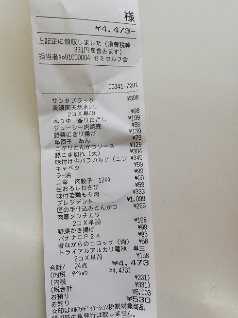 支出:2,101円(軽油)+188円(シリコン)+500円(風呂)+4,473円(スーパー)+100円(武四郎生家)=7,362円