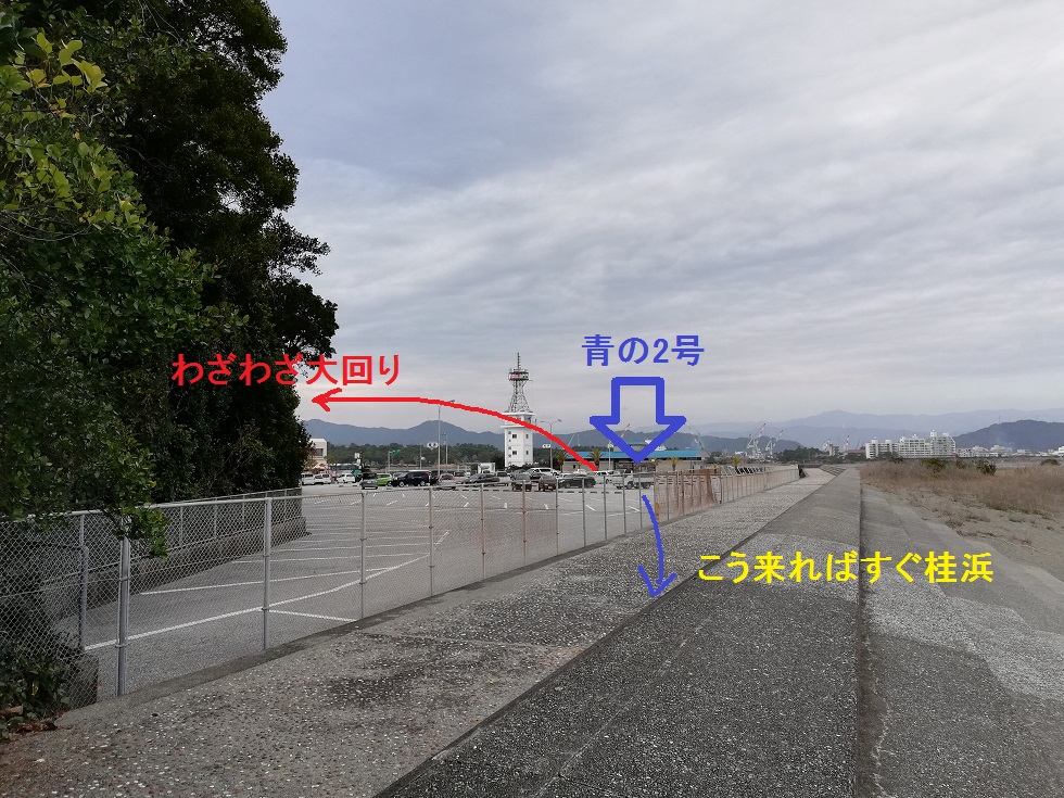 駐車時間にかかわらず400円を徴収する駐車場に車を停めて桂浜を見ようとした場合、フェンスをなくしてすぐに行けちゃうと、わずか1分で桂浜が見学できてしまうわけです。