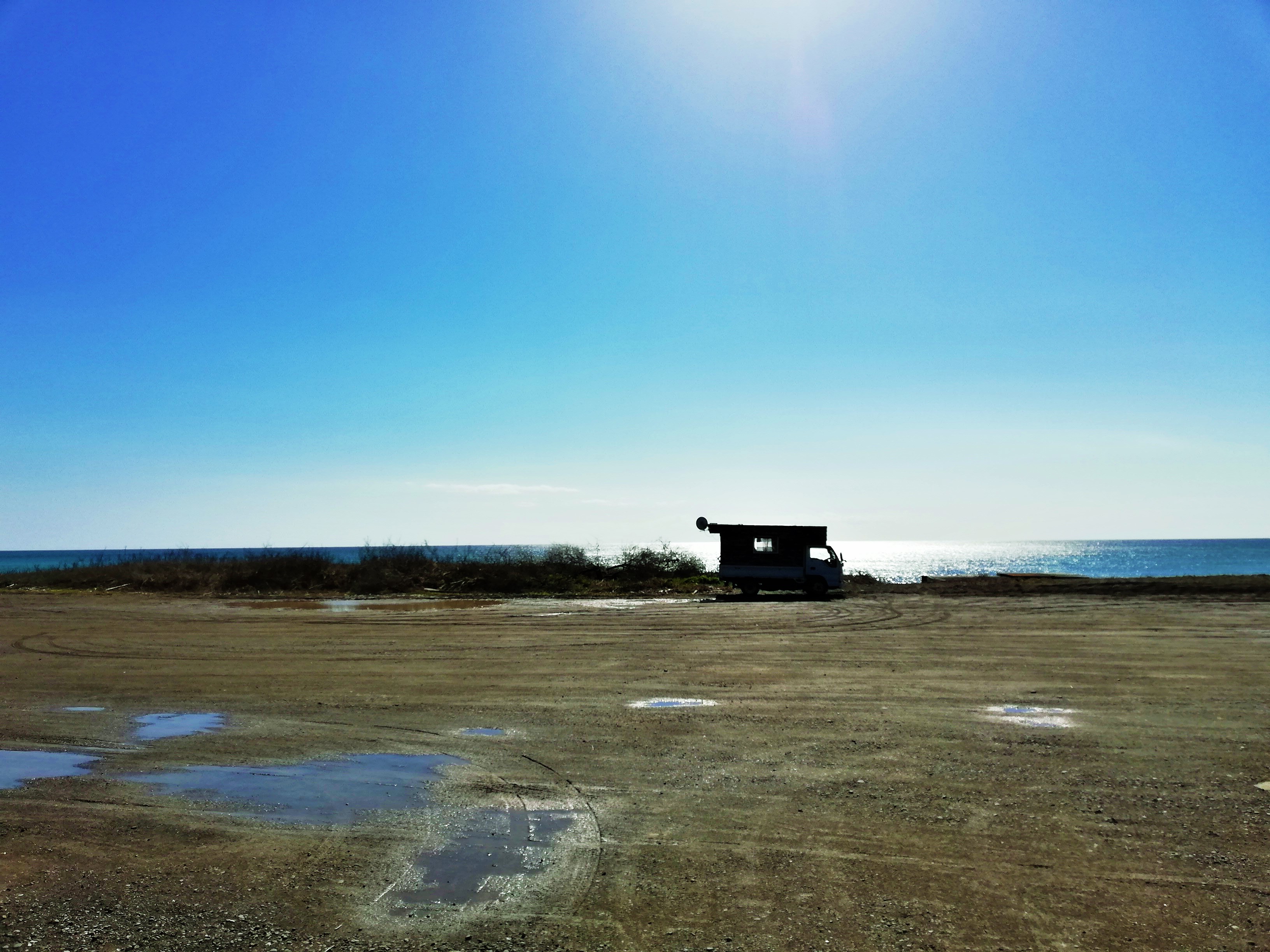 だいたいが、この駐車場から10秒で浜辺に行けるのに、