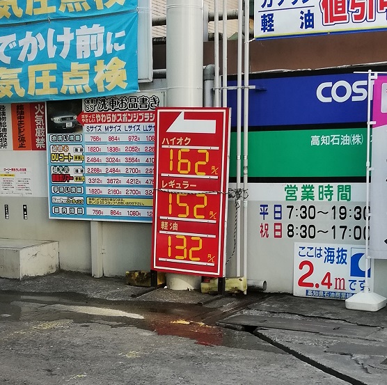 ちなみにNETで調べたら、やはり高知のガソリンは異常に高く市民からも苦情が来ているようです。