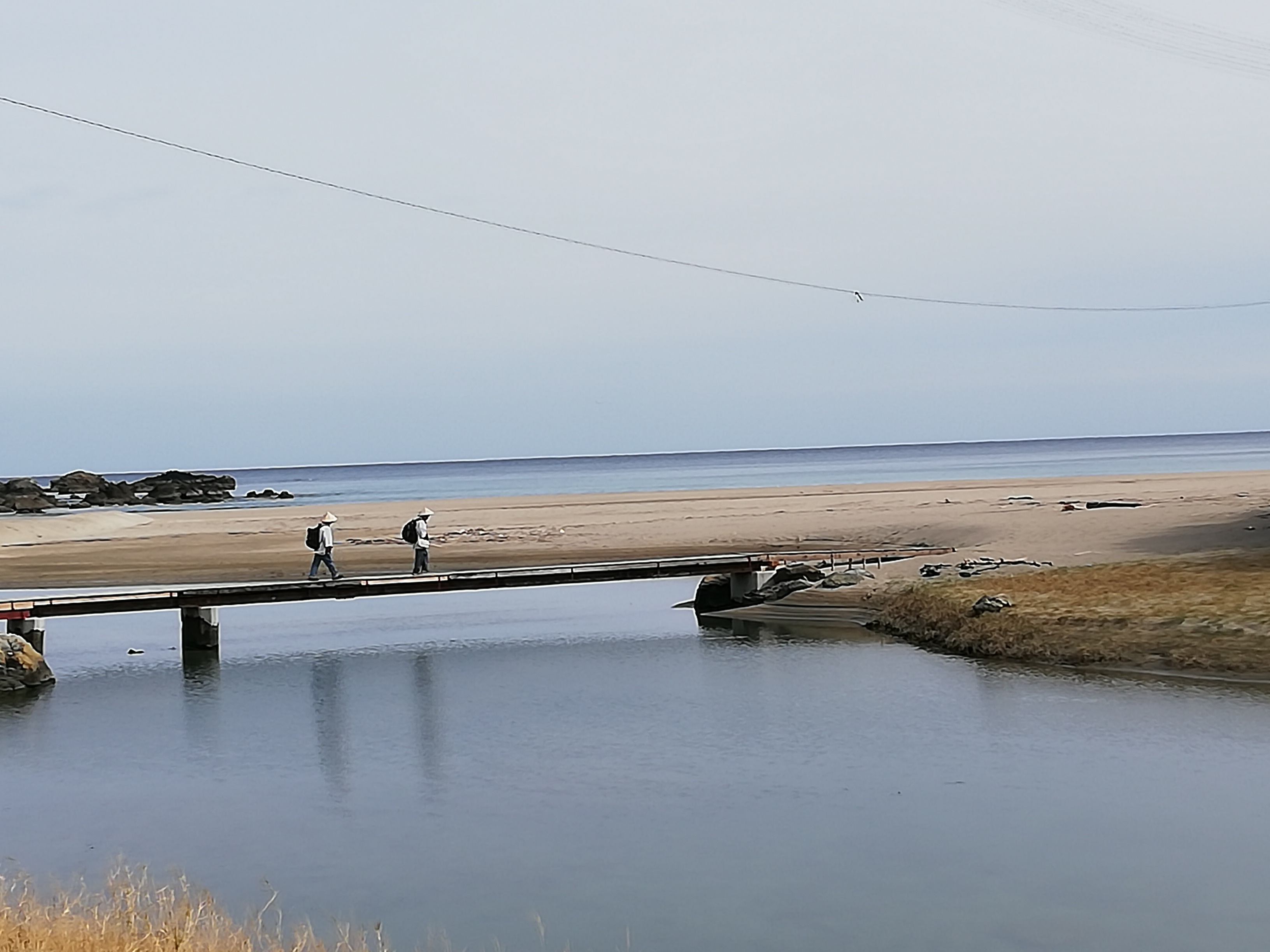 幅1.5mほどの細い橋をお遍路さんが渡っていきます。