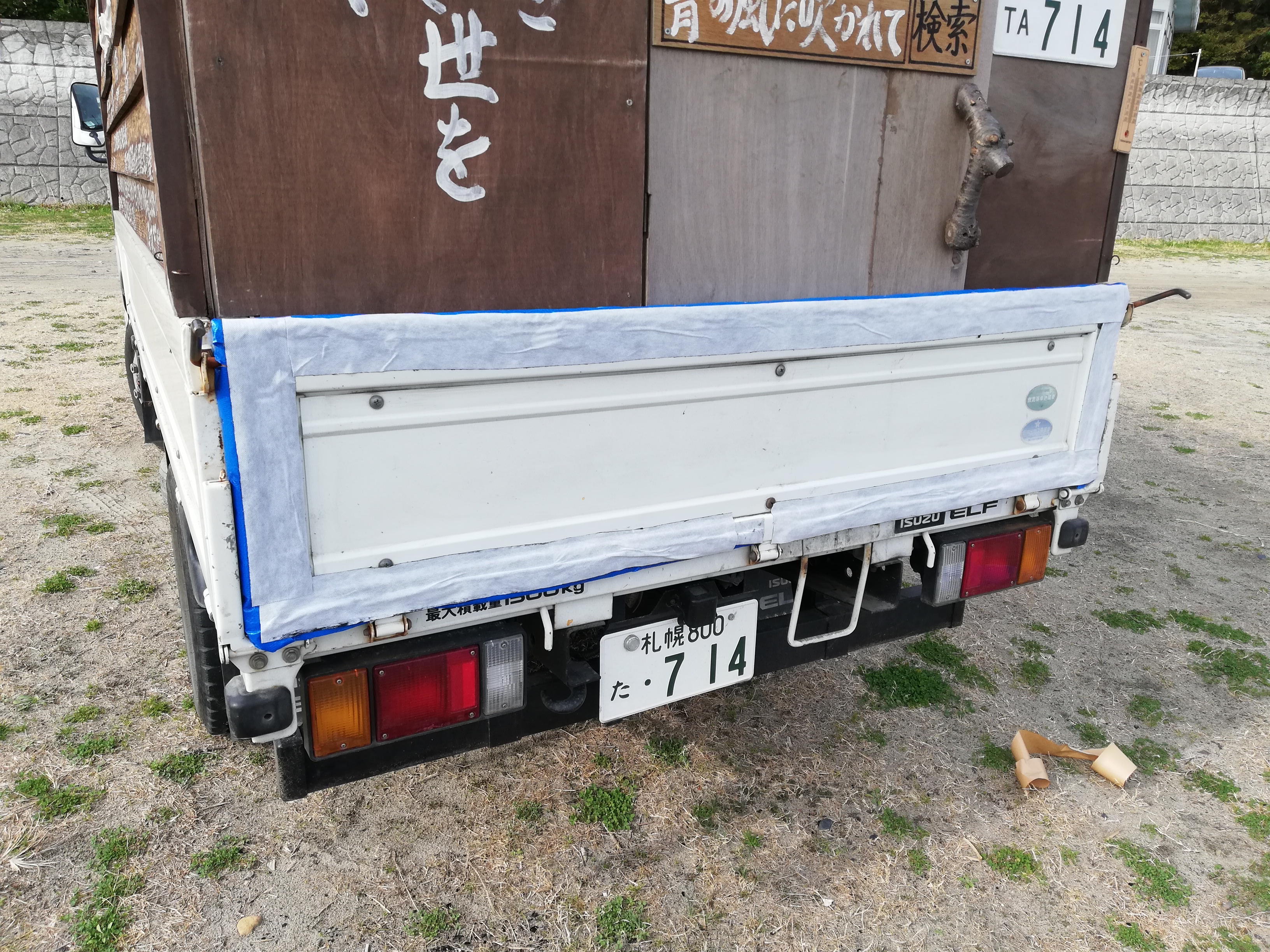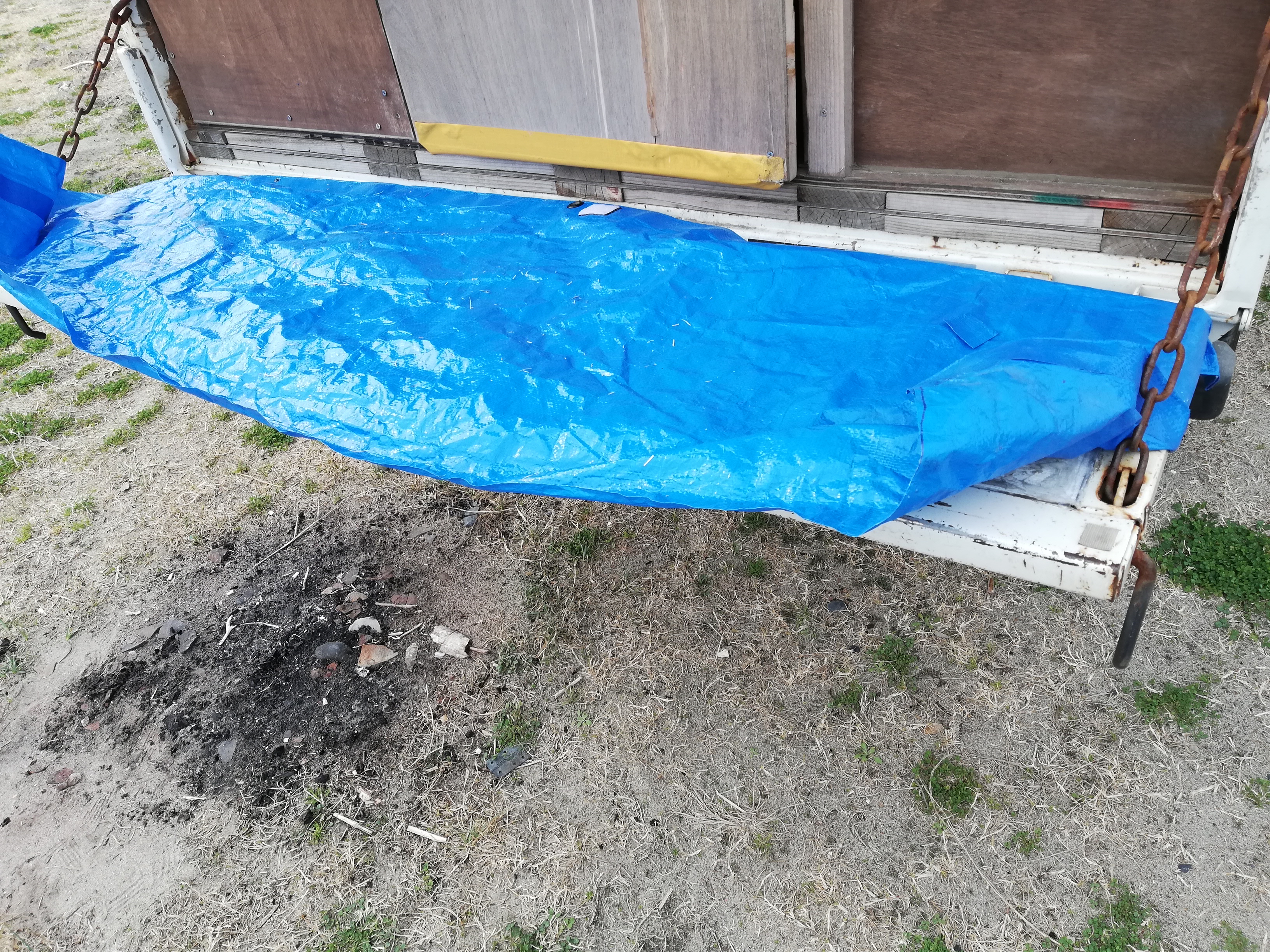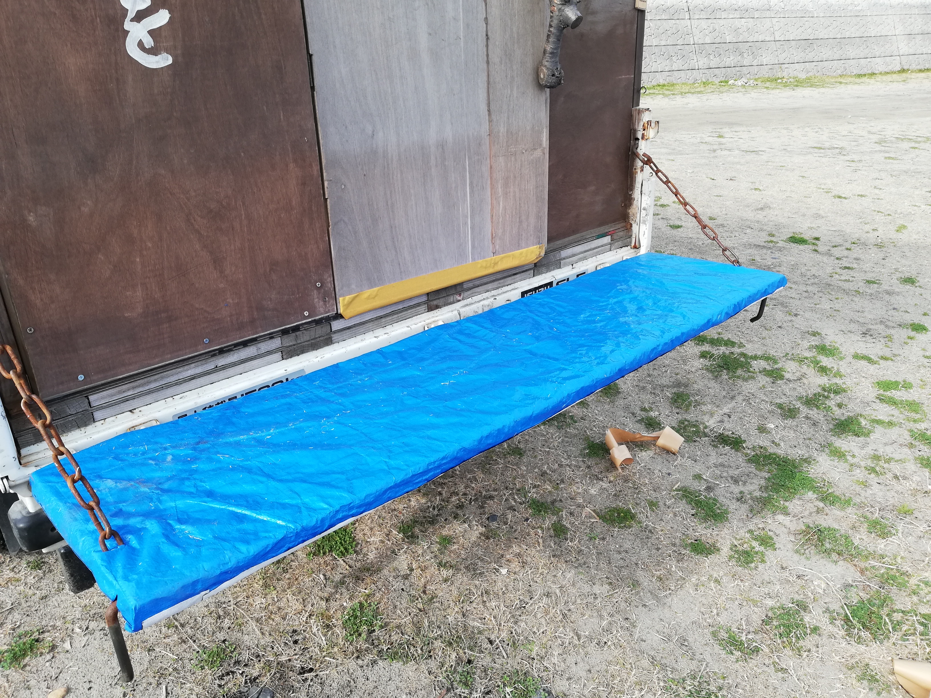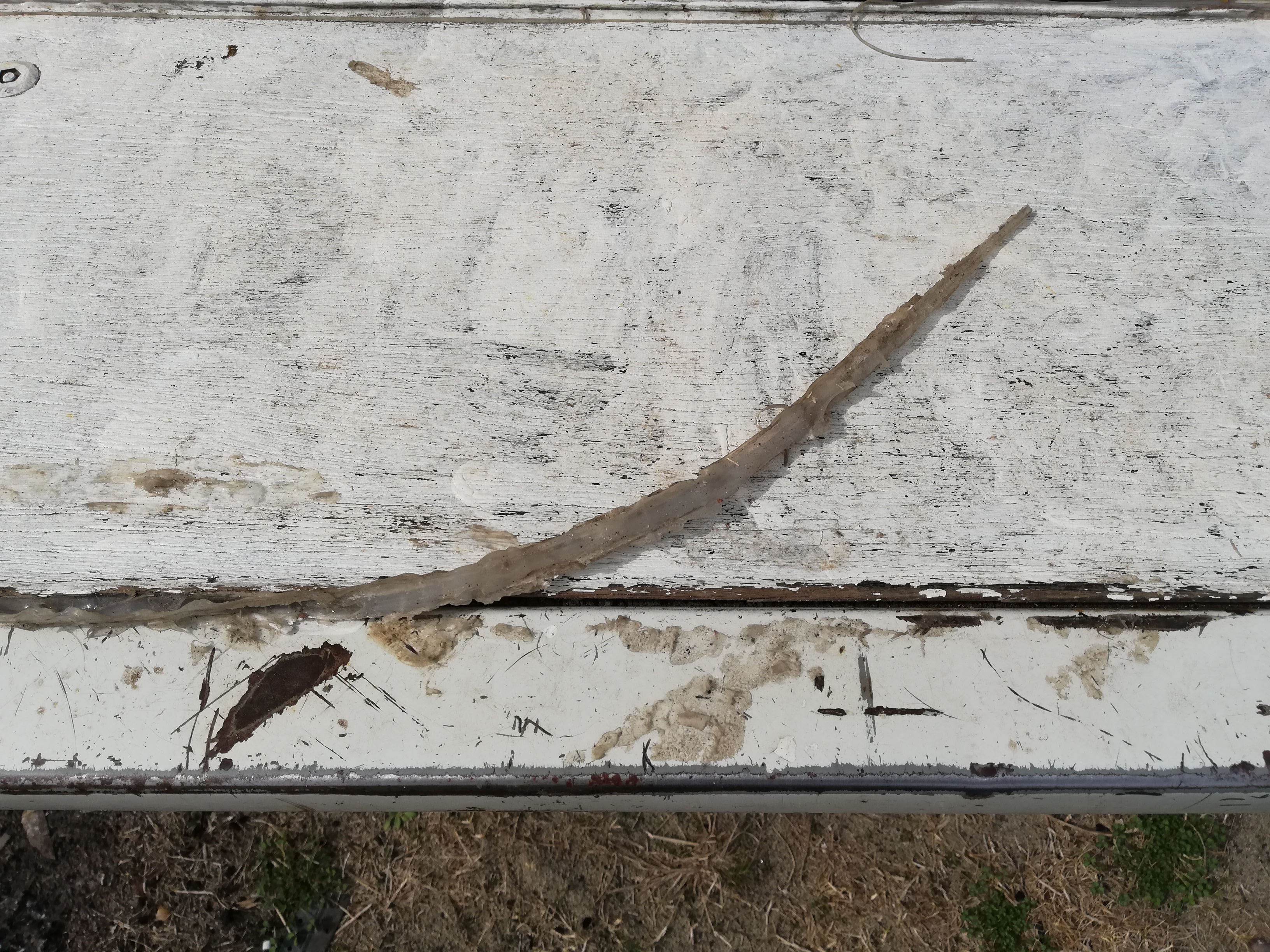 さて、3週間前ほどに雨水と太陽光線で劣化してきたので補強したアオリが