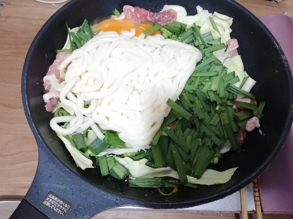 道の駅で買ったニラを大量に入れた讃岐うどんを食べ