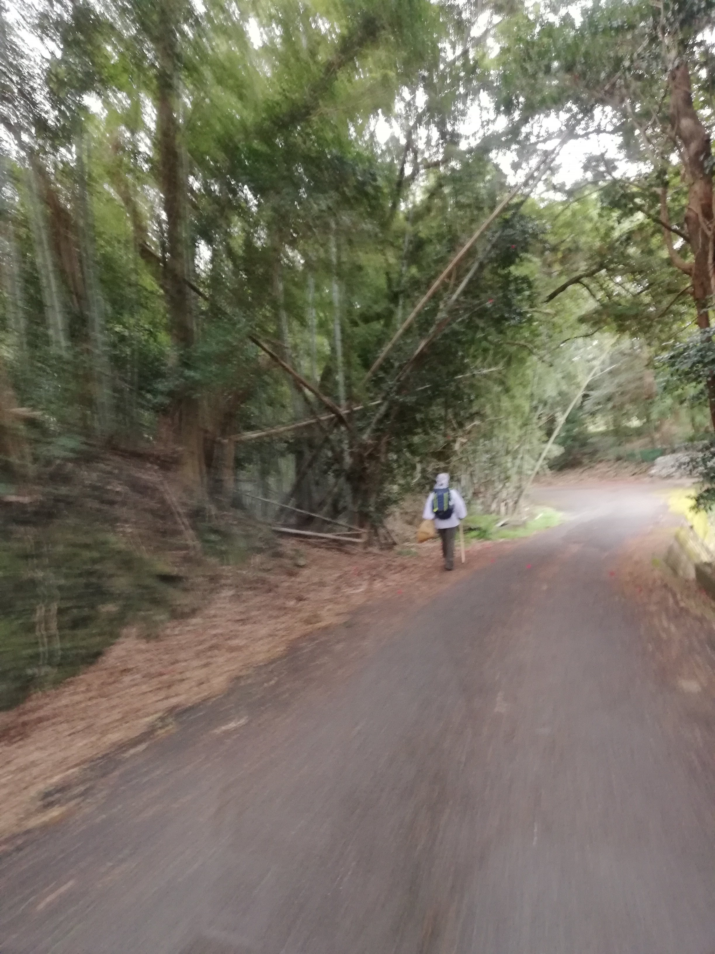 おや、こんな道をお遍路さんが歩いてます。