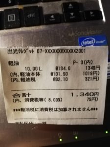 支出:1,340円(給油)