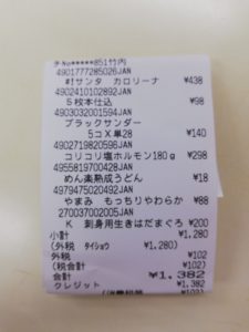 支出:1,382円(食費)+3,200円(軽油)=4,582円