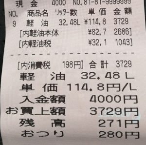 支出:776円(食費他)+3,729円(燃料)=4,505円
