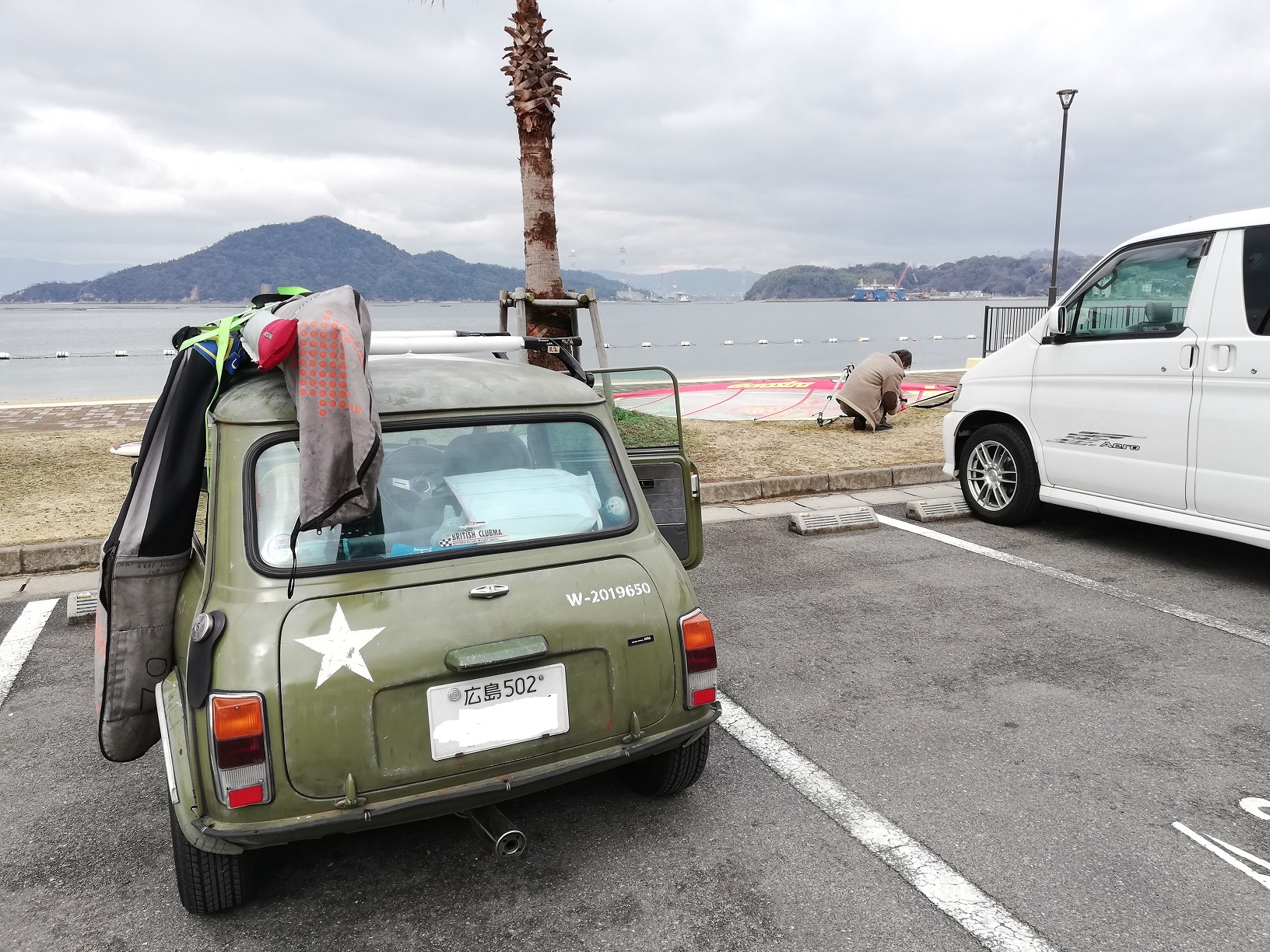 ウィンドサーフィンに来た向こうのYOUの車のようです。