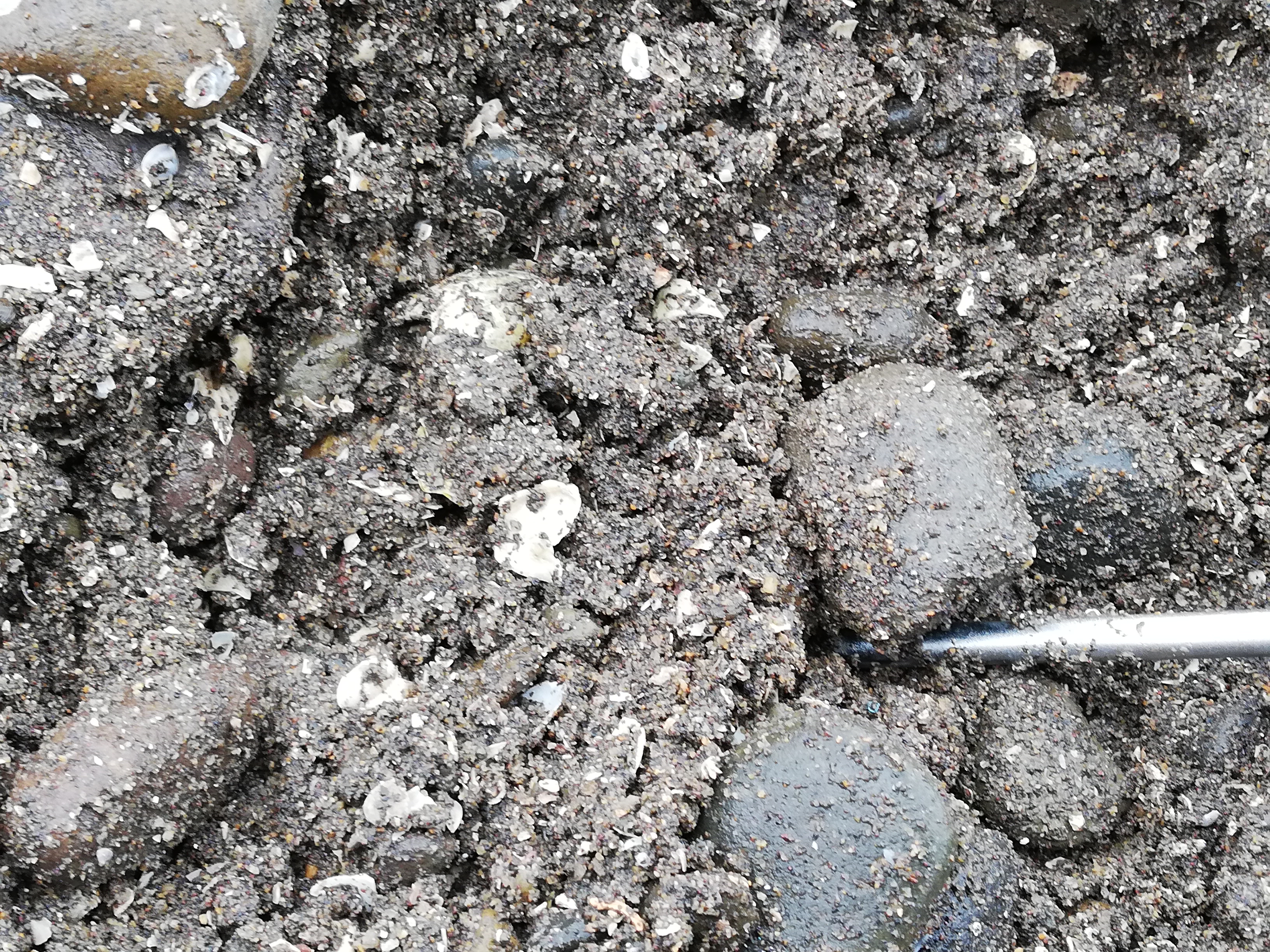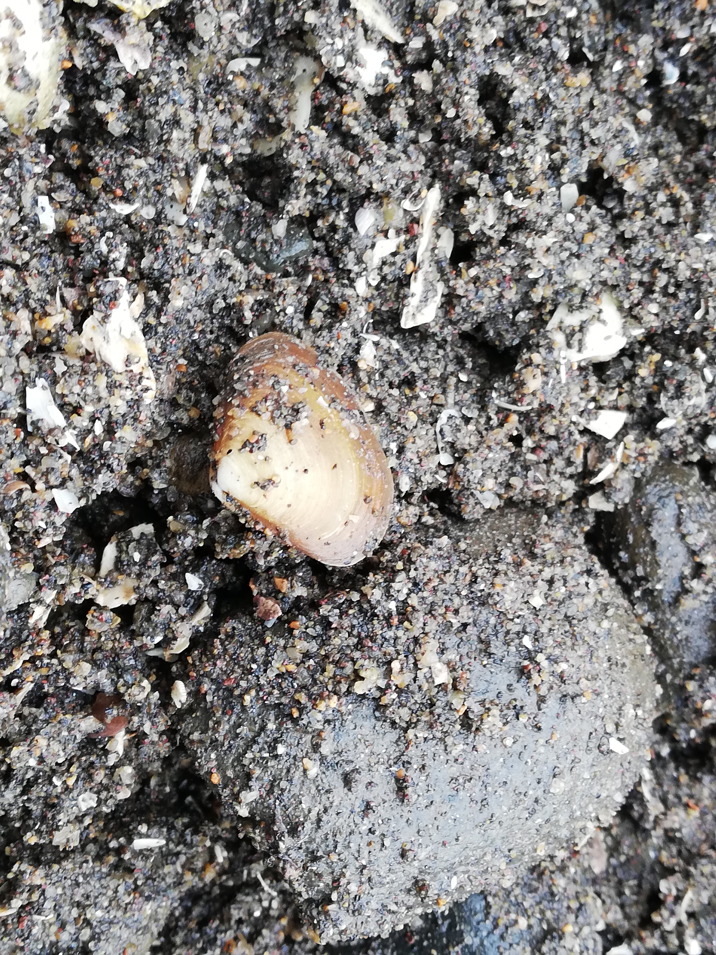 なんか石ころだらけで貝の死骸のかけらが一杯あります。
