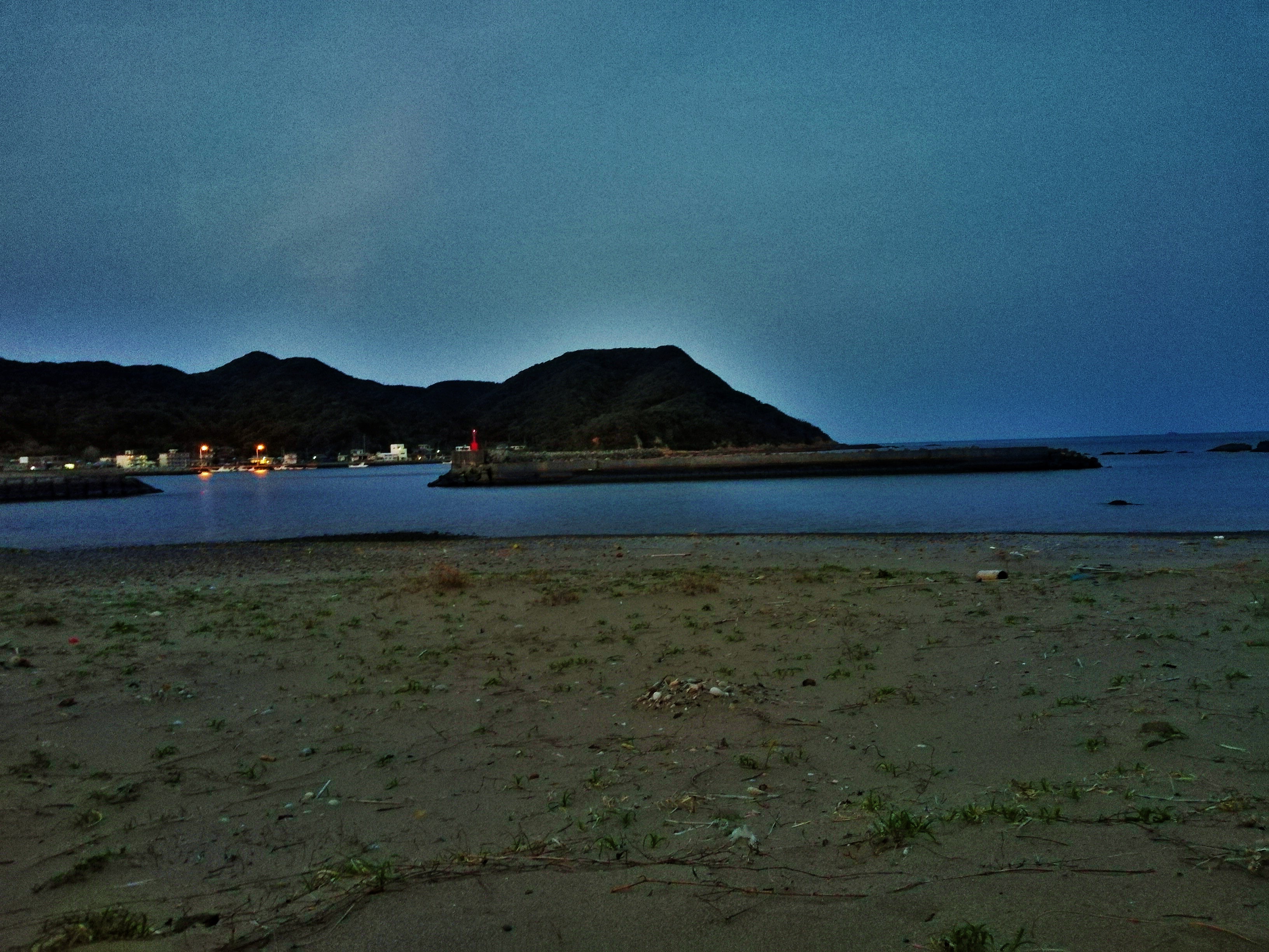 対岸に明かりが灯りだし、あたりを闇が包み始めます。